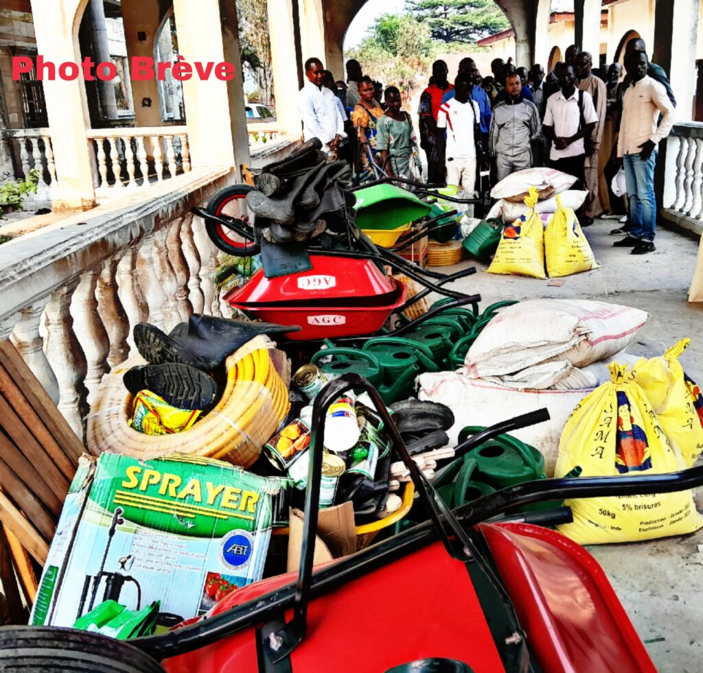 Le don est composé des tuyaux maraichers, du matériel aratoire ainsi que des pulvérisateurs. Ces jeunes en effet, se sont constitués en groupement après leur formation en 2018 dans les domaines de l’aviculture, de l’agropastoral et du maraichage en vue de leur insertion socioprofessionnelle.